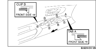 3. Remove the switch panel from the front door trim while sliding it in the direction of the arrow as shown in the figure.