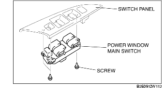 5. Remove the screws, then remove the power window main switch.