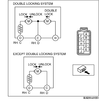 1. Apply battery positive voltage and connect ground to the corresponding front door lock actuator terminals, and inspect the front door lock actuator operation.