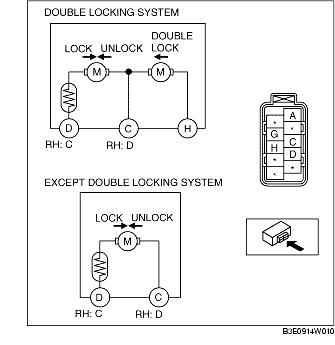 1. Apply battery positive voltage and connect ground to the corresponding rear door lock actuator terminals, and inspect the rear door lock actuator operation.