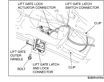 4. Disconnect the liftgate lock actuator connector and liftgate latch switch connector.