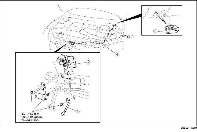 BONNET LATCH AND RELEASE LEVER REMOVAL/INSTALLATION [L.H.D.]