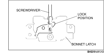 5. Lock the bonnet latch using a flathead screwdriver or equivalent as shown.