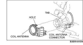 4. Detach the steering lock tabs from the holes on the coil antenna.