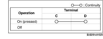 1. Inspect for continuity between the trunk lid key cylinder push switch terminals.