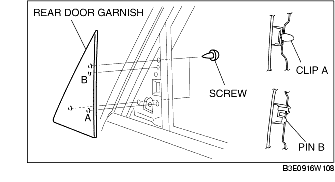 3. Disengage clip A from the body by squeezing it from inside of the vehicle, and remove the rear door garnish.