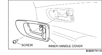 4. Remove the regulator handle. (vehicle without power window system) (See REGULATOR HANDLE REMOVAL.) (SeeREGULATOR HANDLE INSTALLATION.)