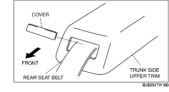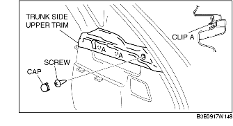 5. Pull the trunk side upper trim outward, then disengage clips A from the body.