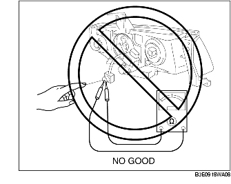 • Because of the danger of electrical shock, when inspecting with a tester, do not inspect the discharge headlight control module as a single unit or disassemble it.