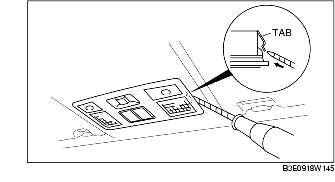 2. Insert a tape-wrapped flathead screwdriver into the gap between the headliner and the map light.