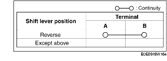 1. Verify that the continuity between the back-up light switch terminals is as indicated in the table.