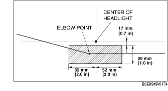 11. Turn the adjusting screws to adjust the headlight so that the elbow point is in the shaded area shown in the figure.