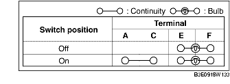 1. Verify that the continuity between the hazard switch terminals is as indicated in the table.