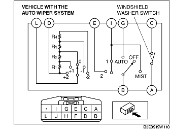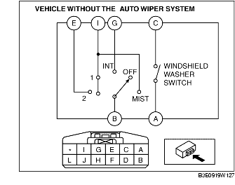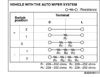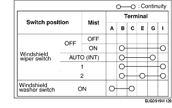 1. Verify that the continuity between the windshield wiper and washer switch is as indicated in the table.