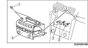 • When installing the center panel module, make sure that the wiring harness and antenna feeder are not caught between the unit and dashboard.If the wiring harness or the antenna feeder is caught between the unit and dashboard, it may cause malfunctions.