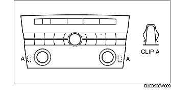 1. Pull the center panel module outward, detach clip A from the dashboard, and then remove the center panel module.
