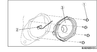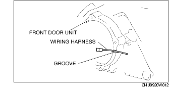 1. Remove the speaker with the wiring harness passing through the groove of the front door module.