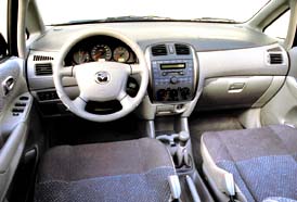 Передняя панель оформлена без изысков, зато отлично гармонирует с обликом машины и создает приподнятое настроение. А главное — здесь великолепно организовано рабочее место водителяКонструкция заднего сиденья, которое составлено из трех отдельных кресел, подчеркивает, что Mazda Premacy — машина пятиместная. Человек ростом 186 см сидит за таким же высоким водителем вполне комфортно, хотя запаса пространства в зоне ног уже не остается. Среднее сиденье заднего ряда поменьше двух боковых, поэтому лучше занять место возле окошка.