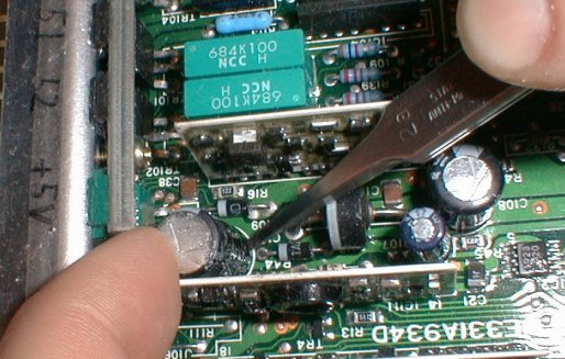 - Pry out the Capacitors. Using a tweezers or small screwdriver,