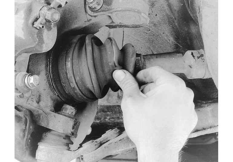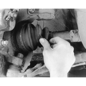 The CV (Constant Velocity) boots should be checked for damage each time the oil is changed and any other time the vehicle is raised for service. These boots keep water, grime, dirt and other damaging matter from entering the CV-joints. Any of these could cause early CV-joint failure which can be expensive to repair. Heavy grease thrown around the inside of the front wheel(s) and on the brake caliper/drum can be an indication of a torn boot. Thoroughly check the boots for missing clamps and tears. If the boot is damaged, it should be replaced immediately. Please refer to Section 7 for procedures.