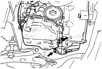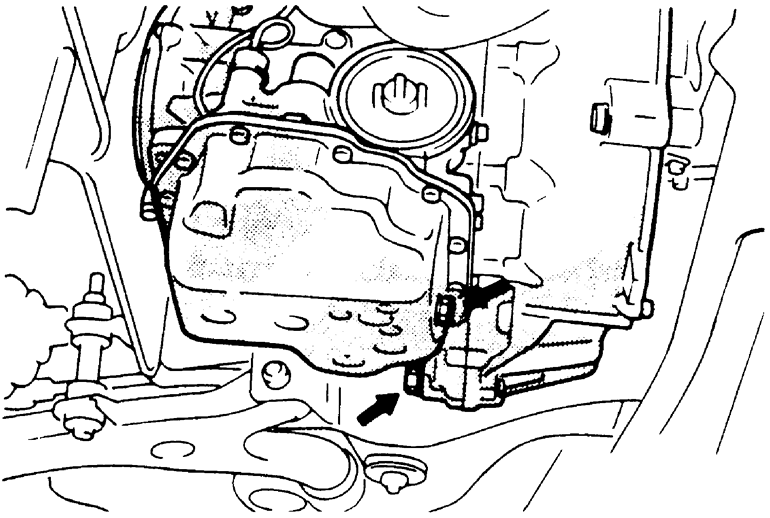 | Fig. 4: Automatic transaxle oil pan mounting — 1995–98 2.0L non-turbo engines |