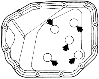 | Fig. 3: Positioning of magnets inside of the automatic transaxle oil pan — 1990–94 vehicles |