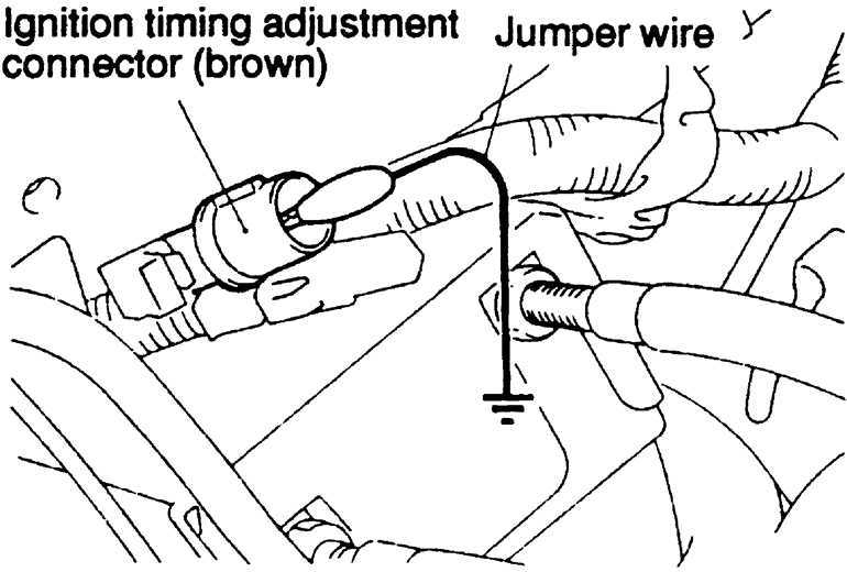 - Stop the engine and connect a jumper wire to the terminal for ignition-timing