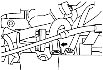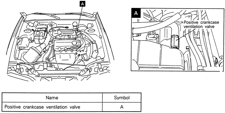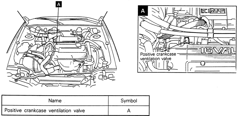 | Fig. 3: PCV valve location — 1995–98 2.0L (non-turbo) engine |