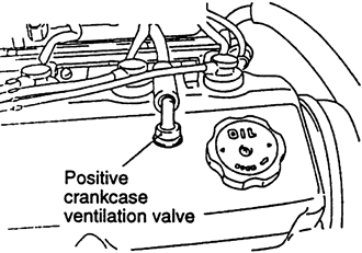 | Fig. 2: Positive Crankcase Ventilation (PCV) valve location — 1990–94 2.0L engine |