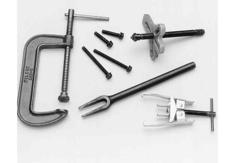 | Fig. 9: Various pullers, clamps and separator tools are needed for many larger, more complicated repairs |