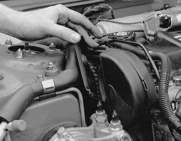 But whether or not you decide to replace the timing belt in the manufacturers schedule, you would be wise to check it periodically to make sure it has not become damaged or worn. Generally speaking, a severely worn belt may cause engine performance to drop dramatically, but a damaged belt (which could give out suddenly) may not give as much warning. In general, any time the engine timing cover(s) is(are) removed you should inspect the belt for premature parting, severe cracks or missing teeth. Also, an access plug is provided in the upper portion of the timing cover so that camshaft timing can be checked without cover removal. If timing is found to be off, cover removal and further belt inspection or replacement is necessary. On some vehicles, you can unfasten the timing belt inspection cover retaining bolt . . .