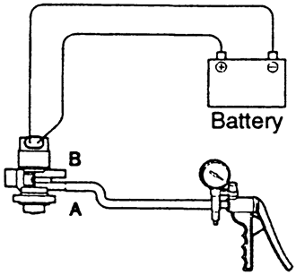 - Attach a hand-held vacuum pump to the nipple (A) of the solenoid valve,