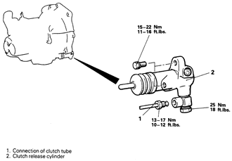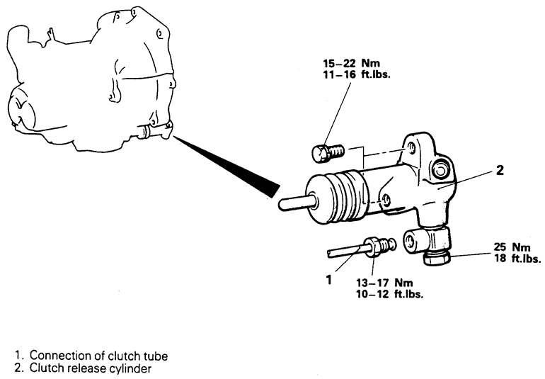 | Fig. 1: Clutch release (slave) cylinder location — 1990–94 vehicles shown |