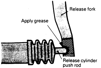 | Fig. 6: Apply a layer of multi-purpose grease to the contact point of the release cylinder pushrod and release fork |