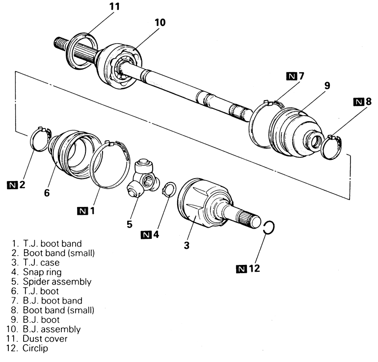 | Fig. 3: Exploded view of the halfshaft assembly — 1995–98