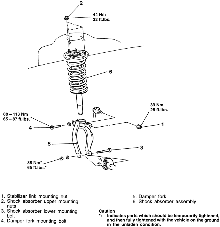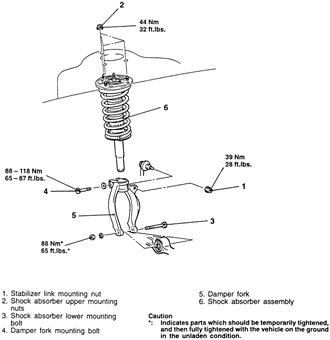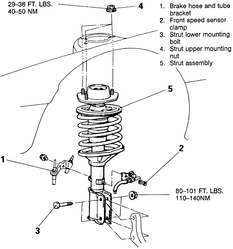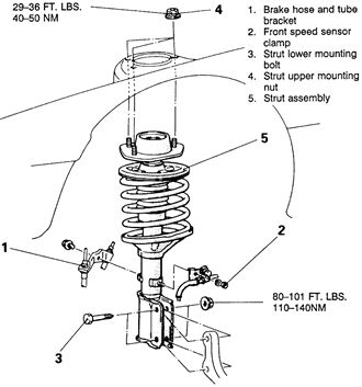 | Fig. 3: Exploded view of the front strut assembly mounting |