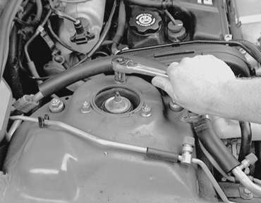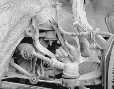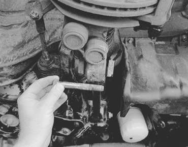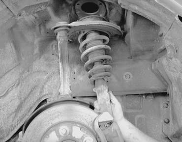| Fig. 1: Removal of front strut lower mounting bolts |