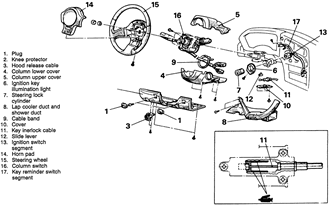 | Fig. 3: Exploded view of the ignition switch and related components — 1995–98 vehicles |