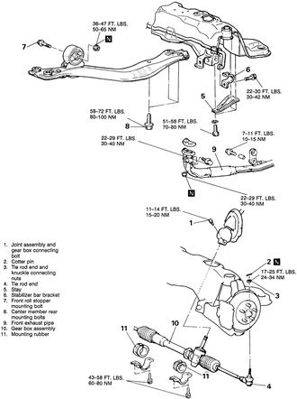 roll stopper. Remove the rear bolts from the center crossmember.
