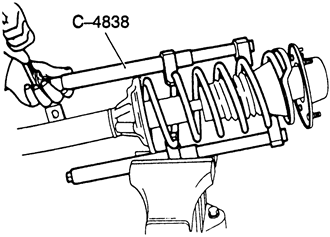 NOTE: Do not use an air tool to tighten the bolt on the spring compressor tool.