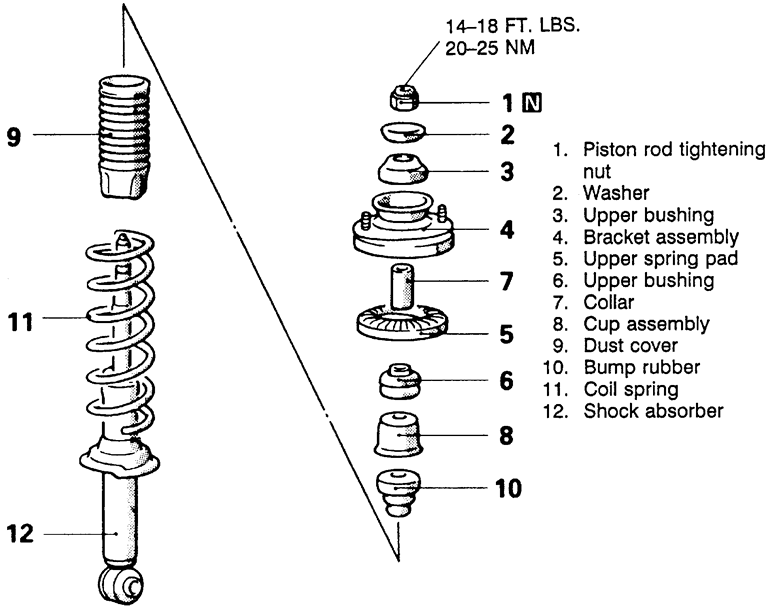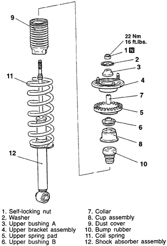 | Fig. 3: Exploded view of the shock and strut assembly — 1995–98 vehicles |