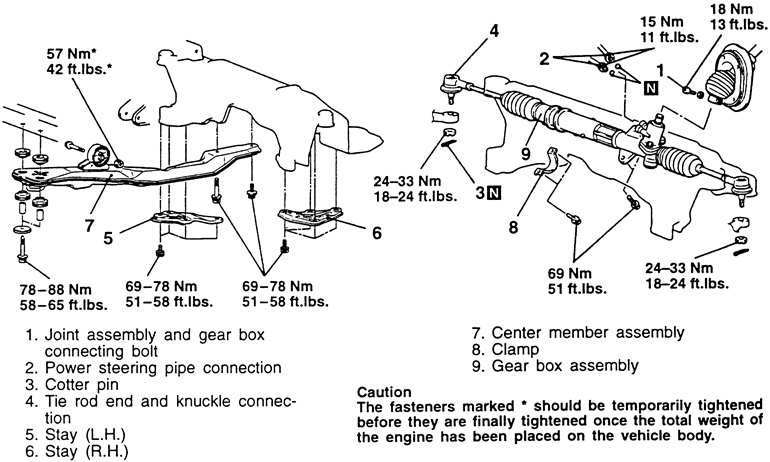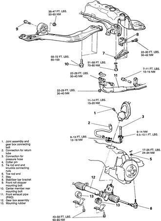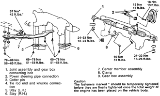 Fig. 1: Power steering gear mounting — 1990–94