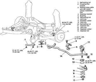 Fig. 1: Rear stabilizer bar removal — 1990–94