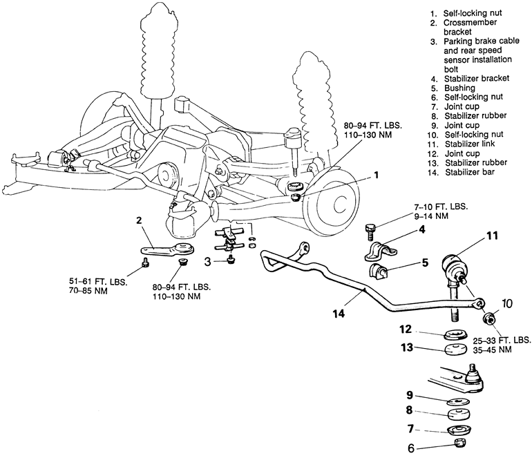 Nm). Tighten the crossmember bracket mounting nut to 94 ft. lbs. (130 Nm).