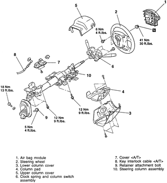 - Remove the retainers, then remove the clock spring and combination switch