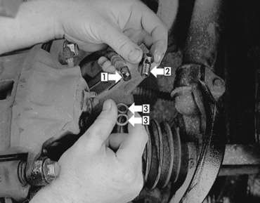 | Fig. 2: . . . then remove the brake hose (1), fitting