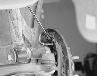 When bleeding the brakes, keep face away from the brake area. Spewing fluid