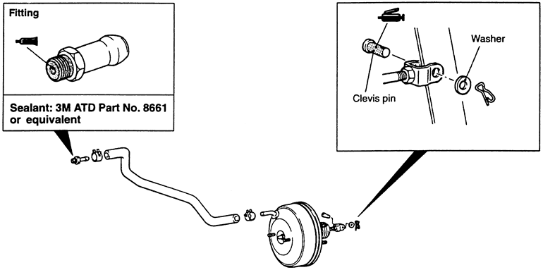 | Fig. 1: Exploded view of the power brake booster and related components — 1990–94 vehicles |