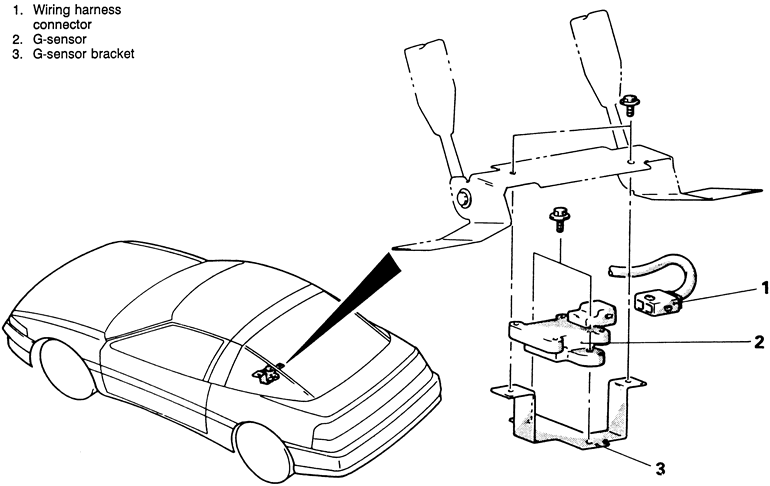 Fig. 2: Exploded view of the G-sensor mounting — 1995–98 AWD vehicles