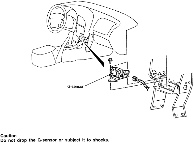 Fig. 1: G–sensor location — 1991–94 AWD vehicles